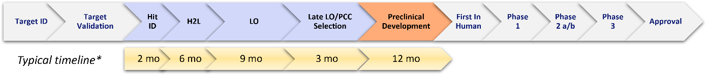 Late LO/PCC - Narrow down to 2-3 compounds to select for PCC candidate and backup compound(s); connect with PRD and FormDev (“Solution Engine”) scientists early.