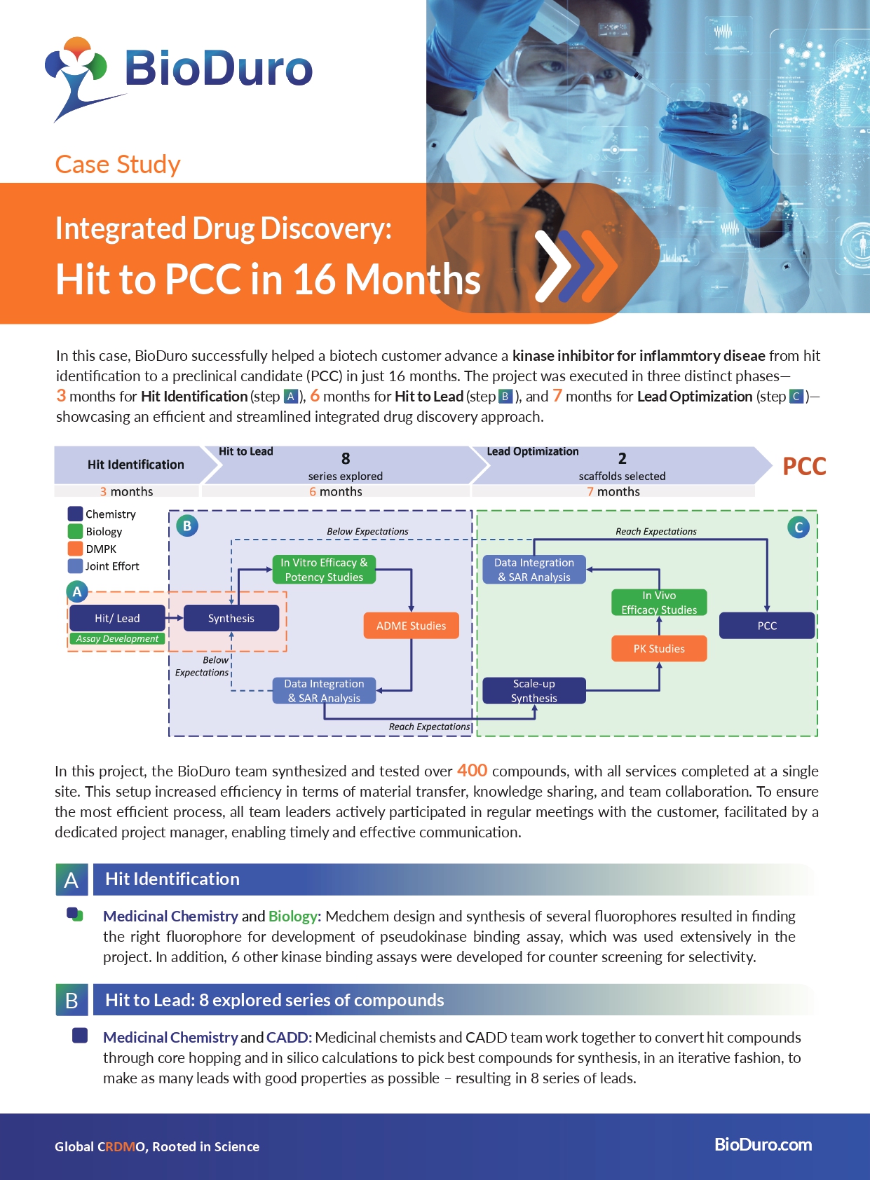 We offer fast, flexible contract services to advance novel drug discovery efforts in the areas of chemistry, biology, DMPK, and others.