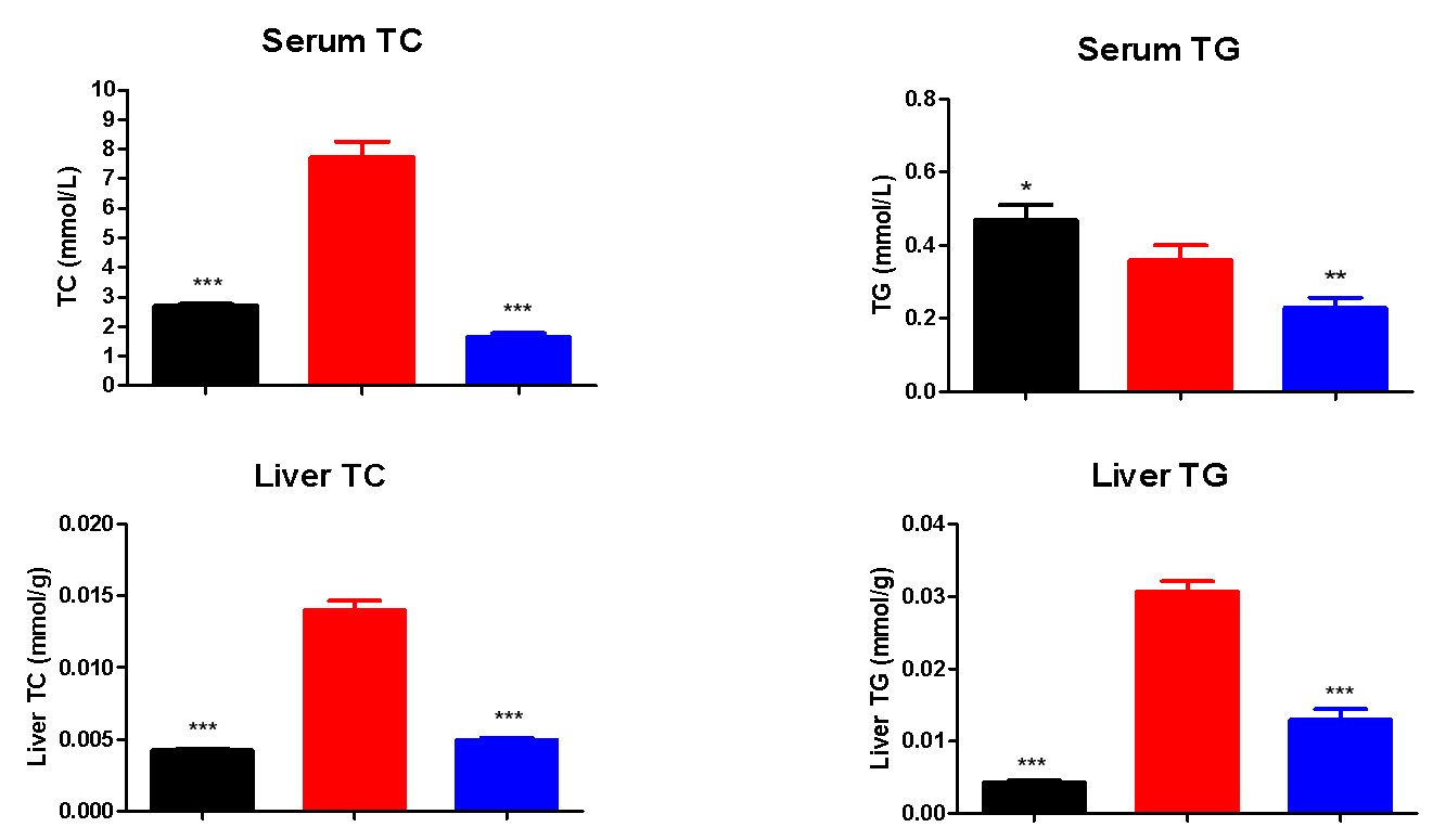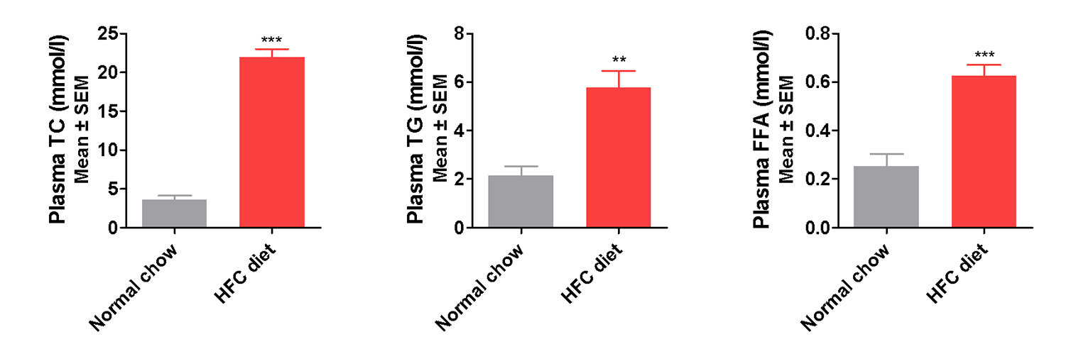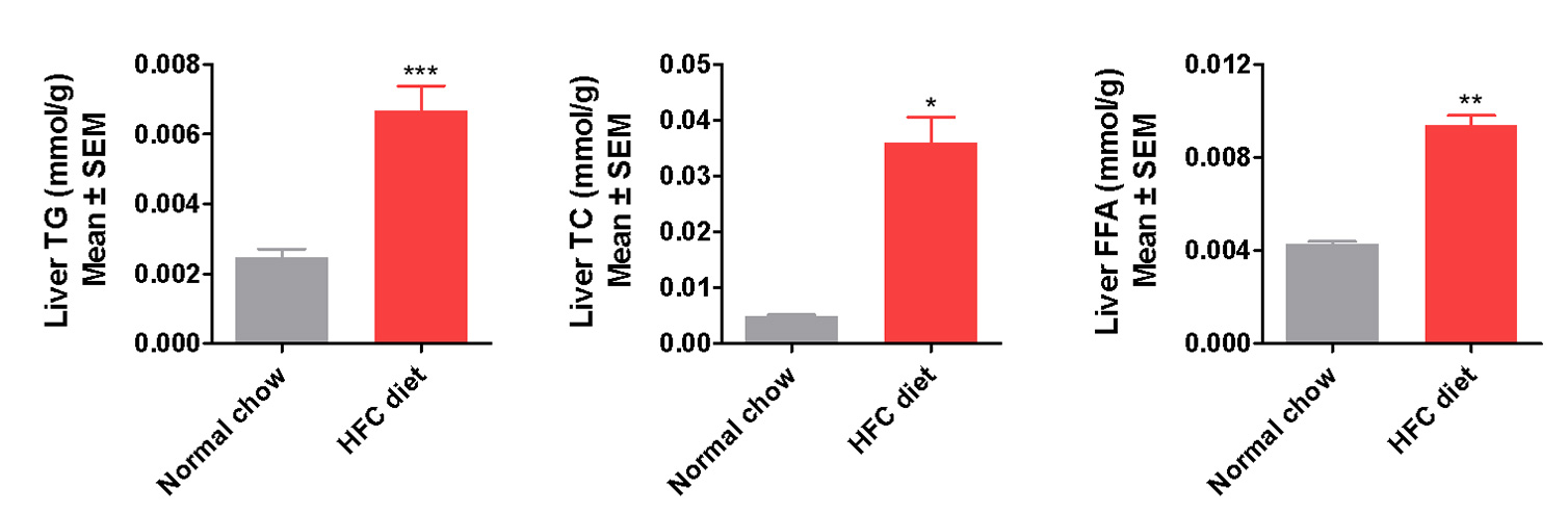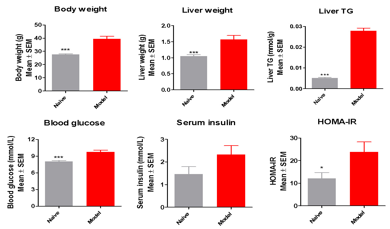 The body weight, liver weight and triglycerides significantly increased in modified HFD induced mice