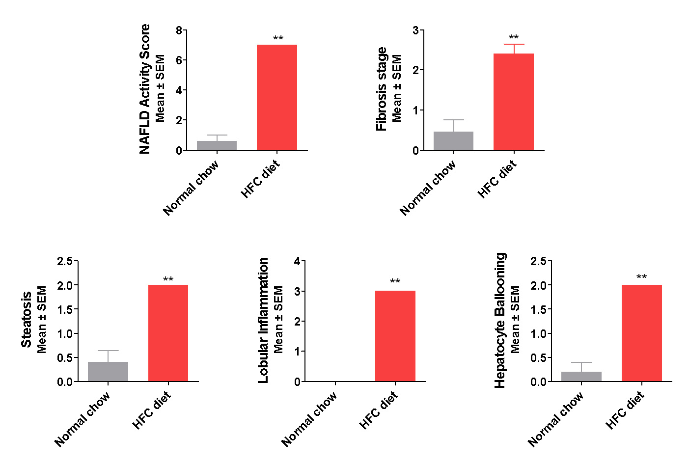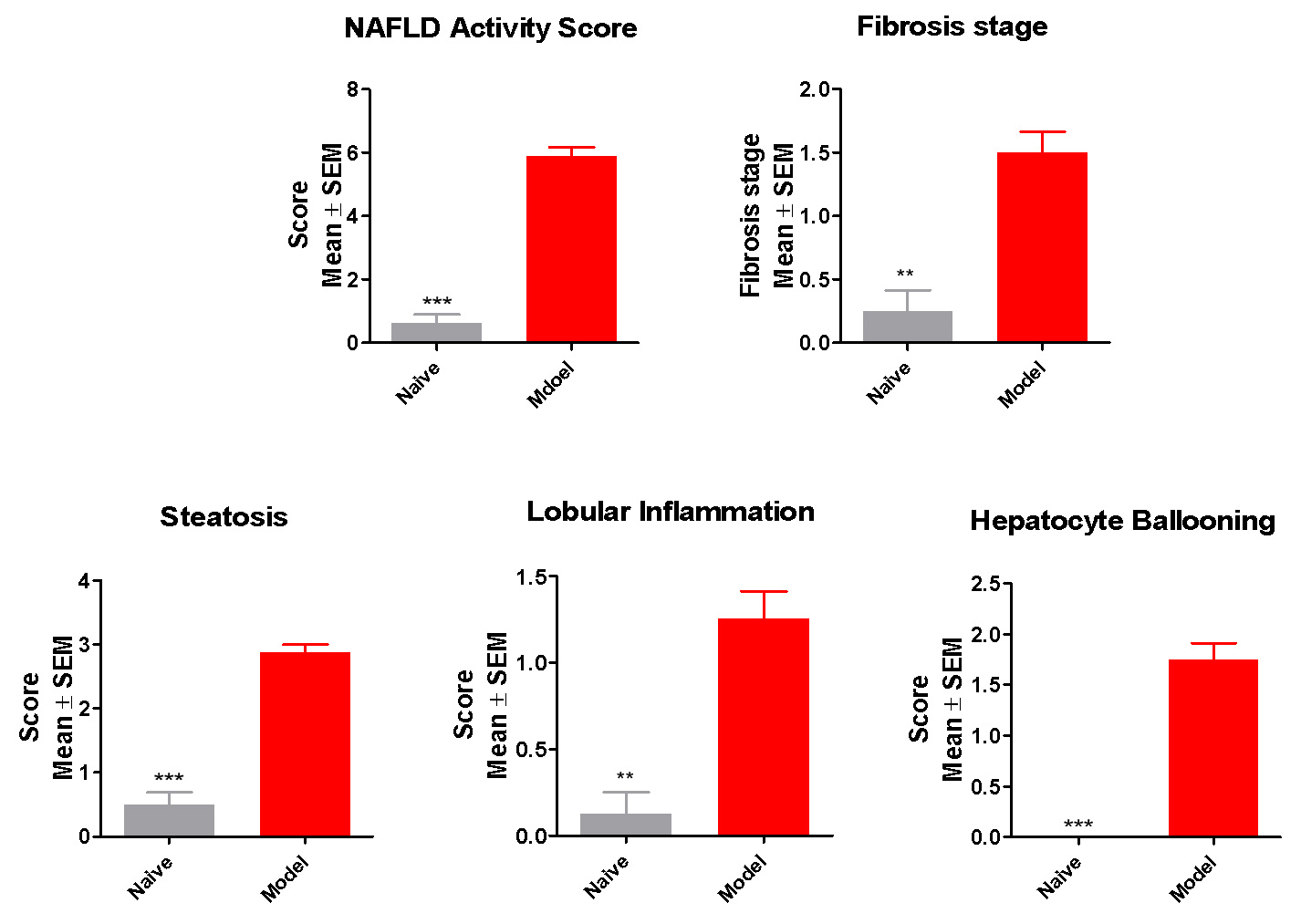 Closely mimic the human MASH/NASH disease condition: dysmetabolic syndromes, inflammation, hepatosteatosis, and fibrosis score
