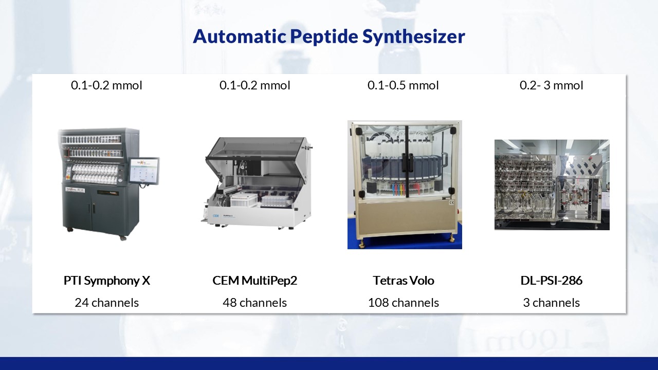 Solid-phase Peptide Synthesis (SPPS) up to 800 mmol, enabling efficient production of linear peptides, cyclic peptides, and various peptide drug conjugates (PDC)